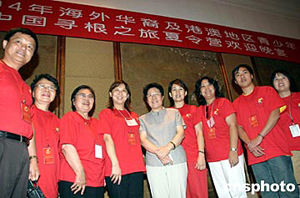 七月二十七日晚,國(guó)務(wù)院僑辦主任陳玉杰在北京國(guó)賓酒店《中國(guó)尋根之旅夏令營(yíng)》領(lǐng)隊(duì)歡迎宴會(huì)上強(qiáng)調(diào);國(guó)僑辦將加大華文教育工作力度。圖為陳玉杰主任與領(lǐng)隊(duì)們合影留念。中新社記者:史利