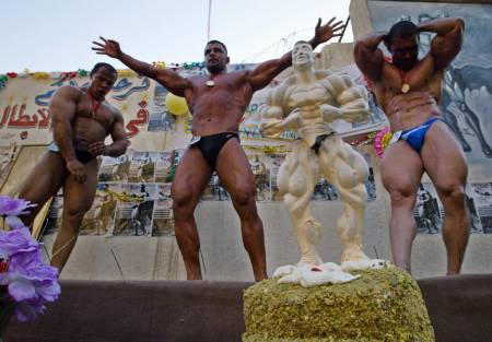 原來,巴格達(dá)有一座以前健美冠軍施瓦辛格名字命名的“阿諾光榮”體育館,這次健美比賽——伊戰(zhàn)后的伊拉克首次全國健美比賽(男子)——就是在該體育館的一塊露天場(chǎng)地上進(jìn)行的。