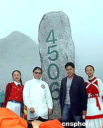 香港奧委會主席霍震霆及公子,8月1日在云南麗江游覽玉龍雪山,在海拔4506高度標(biāo)志前留影。作者:洪少葵