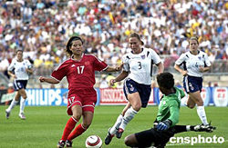 當(dāng)?shù)貢r(shí)間八月一日下午,中國(guó)國(guó)家女子足球隊(duì)在美國(guó)康州州立大學(xué)橄欖球場(chǎng)與美國(guó)女足進(jìn)行友誼比賽,以一比三負(fù)于美國(guó)女足。這是中國(guó)女足奔赴雅典奧運(yùn)會(huì)前的最后一場(chǎng)熱身賽,中國(guó)女足將于八月五日前往雅典。作者:陳鋼