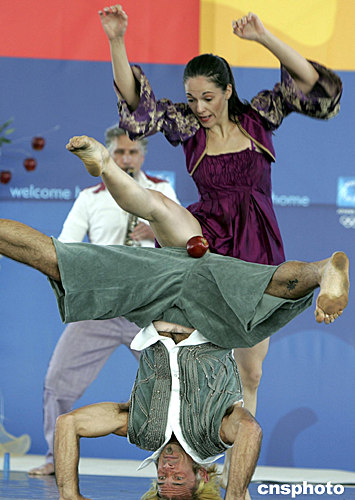 一支激情四射的希臘舞蹈團,當?shù)貢r間8月2日在雅典奧運村內(nèi)為世界各地來賓表演“愛情恩怨”現(xiàn)代精彩舞蹈。中新社記者:任晨鳴
