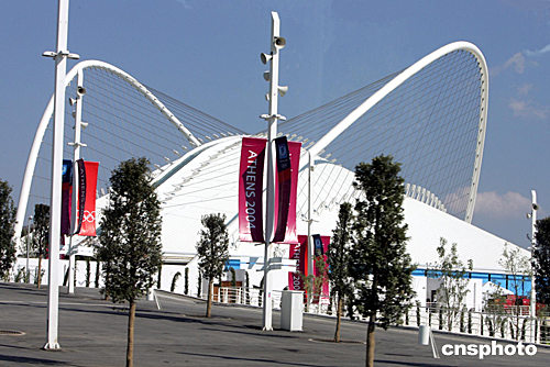 雅典奧運(yùn)會自行車比賽場館緊鄰主體育場,造型別具一格。中新社記者:任晨鳴