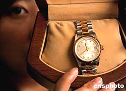 二○○四年八月二十二日是鄧小平誕辰一百周年,上海有關部門特制鑲嵌鄧小平純鉑金頭像的珍藏紀念手表9999塊,以示紀念。八月三日,該機構(gòu)向中國國家博物館捐贈標號為001號的鄧小平紀念手表,該表機芯為瑞士單歷全自動鍍金,表圈、表帶中柱鍍厚金,并配以奧地利水晶鉆石。中新社記者:王麗南