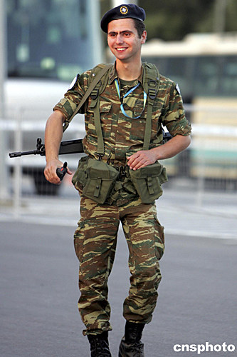位于雅典市西北角的奧運(yùn)村并沒(méi)有出現(xiàn)“重兵把守,嚴(yán)陣以待”的情況,至少把門的希臘警察及預(yù)備役軍人還能手持移動(dòng)電話暢談天下大事,微笑與自信寫在臉上。