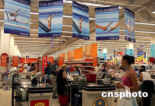 奧運(yùn)會(huì)即將開幕,雅典市的街頭巷尾和市場(chǎng)樓宇處處是與奧運(yùn)會(huì)有關(guān)的宣傳招貼廣告畫。中新社記者:任晨鳴