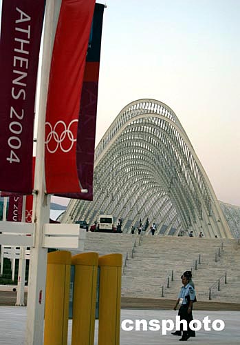 當?shù)貢r間8月3日晚,雅典奧運會體育中心在夕陽映照顯得別具一格。中新社記者:任晨鳴