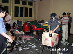 近日,北京昌平警方成功破獲一起賭博案,抓獲涉嫌參賭人員14名,當場收繳賭博用撲克200副,鑒偽點鈔機一臺,賭資(人民幣)5571元、籌碼28萬余元。該賭博場所設在一個三層小樓的一層,室內(nèi)面積約30平米,在房間內(nèi)擺著一張長條桌,桌上擺放著賭具,而在該房間的門口正上方懸掛著一個叫“得意樓”的大牌匾,他們是以“百家樂”的方式進行賭博。目前,此案正在進一步審理中。作者:甘洪斌