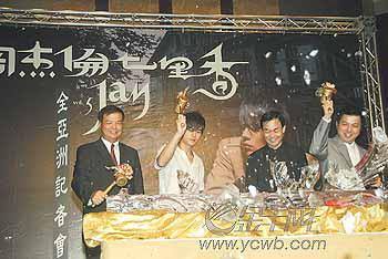 中新網(wǎng)8月4日電據(jù)新快報報道,昨日SONYMUSIC特意在臺北為周杰倫最新專輯《七里香》舉行盛大的記者招待會,蔡依林送的花籃始終擺在顯眼的位置。