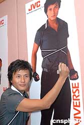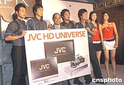 影星連凱、吳彥祖、陳子聰、尹子維8月6日在香港出席日本電氣品牌JVC舉行新一代等離子電視新聞發(fā)布會,四人攜手為該產(chǎn)品代言,并于發(fā)布會上與JVC香港總代理合照。作者:鄧慶樂