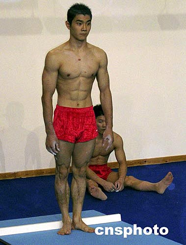 當(dāng)?shù)貢r間8月7日下午,世界冠軍--中國男子體操隊(duì)的主力選手邢傲偉等在雅典訓(xùn)練,備戰(zhàn)即將開始的比賽。作者:沈晨