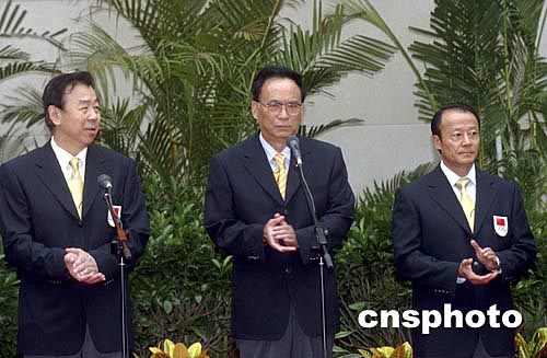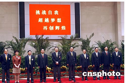 李志堅、袁偉民、李富榮出席歡送奧運軍團儀式八月八日,由中國國家體育總局局長、中國奧委會主席袁偉民擔(dān)任團長的中國體育代表團一行二百六十七人,乘專機起程赴雅典參加八月十三日開幕的第二十八屆奧運會。國家體育總局、中國奧委會為代表團舉行了送行儀式。中新社記者:武仲林