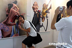 八月八日,一位漫友與漫畫作品零距離接觸。北京動漫嘉年華在中國軍事博物館正式出演,來自日本、韓國、西班牙、法國、我國臺灣地區(qū)和香港地區(qū)及內地三十多位動漫大師名家?guī)砹艘磺Ф喾芳炎鳌T诩文耆A的中心舞臺上演了首屆全國COSPALY炫風星秀大賽復賽和決賽,來自全國各地五大賽區(qū)COSPALY高手決戰(zhàn)京城,同時還有來自日本、韓國、馬來西亞等地的COSPALY冠軍同臺表演助興。作者:韓藝冰