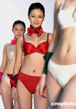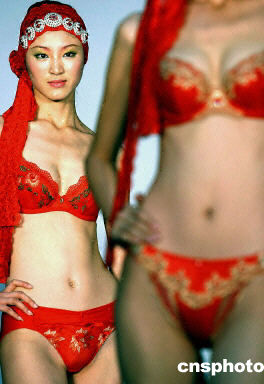 近日在北京舉行的旨在展示中國當?shù)貎?nèi)衣發(fā)展趨勢的時裝秀上,T型臺上盡現(xiàn)東方嫵媚新視點。