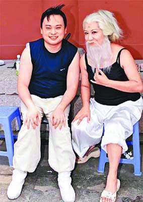 對于自己這個(gè)白衣長老的造型,薛家燕說:“本來不用粘這些胡子的,但我覺得粘上去會(huì)逼真很多,而且效果也很明顯,不過粘了上去以后你會(huì)覺得很辛苦,特別是這么熱的天氣!彪m然只是合作了幾天,但薛家燕對孔慶翔依然是贊不絕口,“他雖然是新人,但是我覺得他的演出已經(jīng)是很專業(yè)和投入,他很努力,每天的對白都背得很熟。其實(shí)在這部電影里,我們不需要他有特別的演出,只要做本能的演出就可以了,例如你們剛才看到的,召喚飛鳥來救我他只需在旁邊鼓掌就行了,而那些動(dòng)作武打戲份就讓我和恬妞去分擔(dān),我希望大家可以給點(diǎn)時(shí)間讓他去磨練。”薛家燕對他的演出打了一個(gè)80分,欠缺的20分她認(rèn)為應(yīng)該是外界看了這部片以后給的。