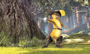國王下令逮捕史瑞克一行人一場戲,借用當代警匪片和西方電視臺“真實現(xiàn)場”類節(jié)目的鏡頭語言。史瑞克等人先后被警察圍捕、戴上手銬、投入警車。一個細節(jié)是,貓咪殺手被栽贓,警察從它身上搜出一包海洛因。全身是毛、近乎裸體的貓身上怎么會夾帶毒品?(王星)