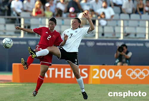 中新網(wǎng)8月11日電 雅典奧運(yùn)會(huì)女足比賽當(dāng)?shù)貢r(shí)間11日先燃戰(zhàn)火。在晚間舉行的本屆雅典奧運(yùn)會(huì)女子足球小組賽F組的比賽中,曾經(jīng)的“鏗鏘玫瑰”中國(guó)女足,首戰(zhàn)不敵世界冠軍德國(guó)隊(duì),以0比8罕見的大比分慘敗。