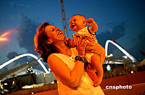在雅典醫(yī)院工作的護(hù)士撒拉瑪抱著三個月大的兒子在奧運會主賽場前歡迎離開雅典108年的奧運回家,她說孩子六個月大時才能起名字,他該有個與奧運有關(guān)的名字作紀(jì)念。中新社記者:王瑤