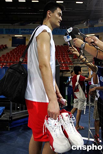 當(dāng)?shù)貢r(shí)間八月十二日下午,剛剛抵達(dá)雅典的中國男籃在郊外奧運(yùn)會(huì)籃球館參加訓(xùn)練。