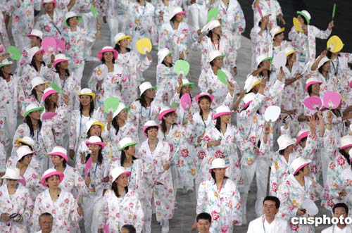 當?shù)貢r間八月十三日晚,第二十八屆奧運會在希臘雅典隆重開幕。圖為日本代表團進入開幕式會場。中新社記者:毛建軍