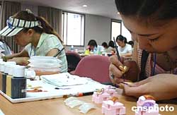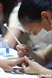 八月十四日,來自日本、韓國和中國臺北、中國大陸的四十余名選手,在北京國際展覽館舉行2004國際美甲藝術(shù)邀請賽。作者:韓藝冰