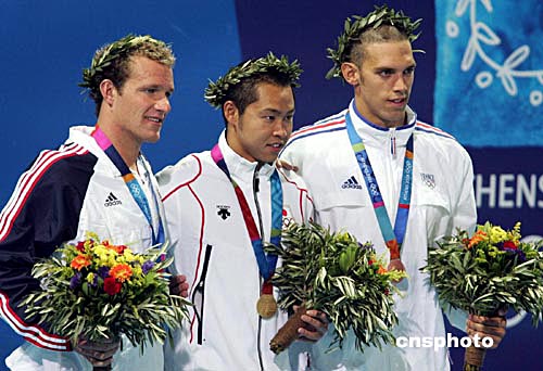 十四日上午,北島康介剛剛在預(yù)賽中以一分零三秒刷新奧運會紀(jì)錄,下午半決賽漢森就以一分零一秒將紀(jì)錄改寫。