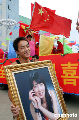 八月十四日十六點(diǎn)三十分,在雅典奧運(yùn)會(huì)女子十米氣步槍決賽中,山東籍選手杜麗奪得奧運(yùn)會(huì)第一枚金牌。喜訊傳來,曾經(jīng)培養(yǎng)過她的山東省競(jìng)技體育學(xué)校的師生們揮舞著國旗歡呼慶祝。作者:王鋒