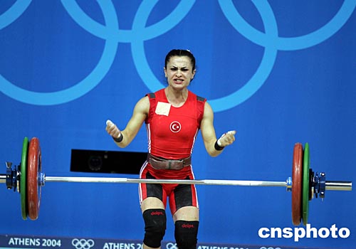當(dāng)?shù)貢r(shí)間8月14日晚,雅典奧運(yùn)會(huì)舉重首日賽事展開(kāi),被視為中國(guó)“囊中之物”的女子四十八公斤級(jí)金牌,被土耳其選手TAYLAN NURCAN橫刀搶走。中新社記者:任晨鳴