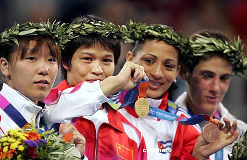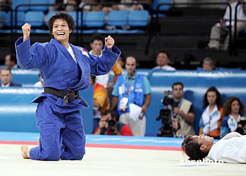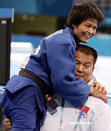 當(dāng)?shù)貢r間八月十五日,在雅典舉行的第二十八屆奧運(yùn)會女子五十二公斤級比賽中,中國選手冼東妹戰(zhàn)勝日本選手橫澤由貴獲得金牌。中新社記者:毛建軍