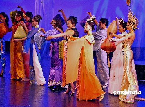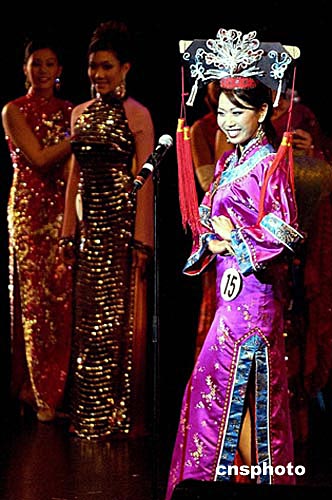 美東時間八月十五日凌晨,在美國舊金山舉行的第十九屆全美亞裔小姐比賽中,二十一歲的泰裔小姐巴莉(Baree)(中)獲得冠軍,二十三歲的華裔小姐蔡鳳雯(左)和二十四歲的華裔小姐曾可妮(右)分獲亞軍和季軍。作者:陳鋼