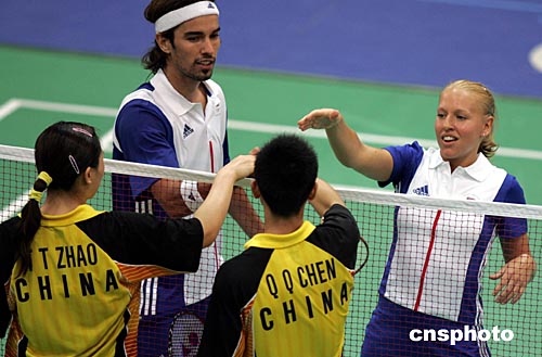 被列為混雙六號種子的中國球員陳其遒/趙婷婷今天與四號種子、英國選手羅伯森/埃姆在四分之一決賽中遭遇。陳、趙二人沒有打出速度上的優(yōu)勢,全場受制于對手,以八比十五和十五比十七敗陣。