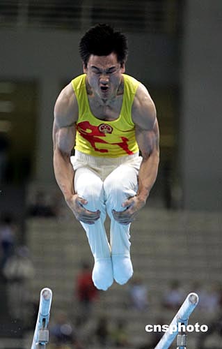 當(dāng)?shù)貢r(shí)間八月十六日晚,雅典奧運(yùn)男子體操團(tuán)體比賽在奧運(yùn)體操比賽館舉行,中國(guó)隊(duì)衛(wèi)冕失利,僅獲得第五名。中新社記者:毛建軍