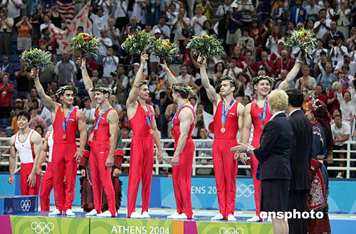 當(dāng)?shù)貢r間八月十六日晚,雅典奧運男子體操團體比賽在奧運體操比賽館舉行,羅馬尼亞隊獲得銅牌。中新社記者:毛建軍