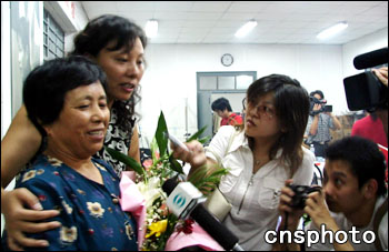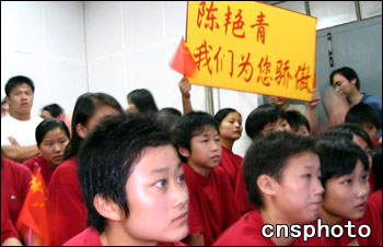 這時(shí),我們也終于看到了陳艷青的媽媽陸榴云展露笑顏,筆者注意到,當(dāng)陳艷青第一次出場的時(shí)候,陳媽媽便開始以手掩面,不敢直電視鏡頭里女兒那矯健的身影,只有在人們的歡呼聲中得知女兒舉起來了,才敢再次注視電視鏡頭。到了后來,陳媽媽更是緊張的說不出話來,在工作人員的幫助下服用了幾顆保心丸才能把心情穩(wěn)定。筆者后來才了解到,原來陳媽媽以前從來不觀看女兒的舉重比賽,今天初此看便是在如此隆重的賽事、如此隆重的場合,不免有點(diǎn)緊張過度了,當(dāng)女兒最后摘得了金牌,這位淳樸的老人終于如釋重負(fù),當(dāng)人們問她最想對(duì)遠(yuǎn)在雅典的女兒說什么時(shí),她激動(dòng)地說,“陳艷青,好樣的!”