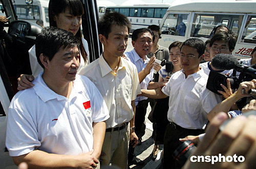 首批回國的運動員包括為中國贏得本屆奧運會首枚金牌的射擊選手杜麗、奧運會六朝元老王義夫和首次參加奧運會就奪得男子10米汽步槍冠軍的19歲小將朱啟南等。