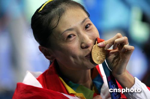 當(dāng)?shù)貢r(shí)間八月十九日下午,中國(guó)羽毛球名將張寧以2:1力克荷蘭選手張海麗,獲得本屆奧運(yùn)會(huì)女子單打冠軍,從而使中國(guó)金牌總數(shù)躍升至12枚。中新社記者:任晨鳴