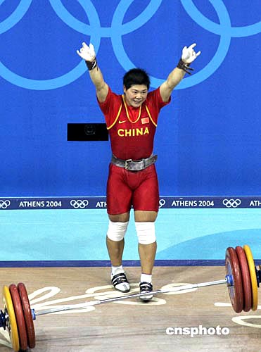 中新社雅典八月十九日電(記者宋方燦)奧運(yùn)會(huì)舉重賽場(chǎng)當(dāng)?shù)貢r(shí)間十九日下午再產(chǎn)生一金,中國(guó)選手劉春紅面對(duì)強(qiáng)敵敢打敢拼,以二百七十五公斤的總成績(jī)獲得金牌。同時(shí),她的挺舉和總成績(jī),也雙雙打破了她自己保持的世界紀(jì)錄。