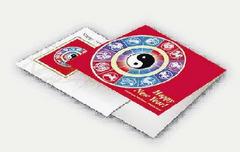 此外,還有特別的首日封設(shè)計(jì),一款設(shè)計(jì)為純白信封,信封左側(cè)有十二生肖到齊排成一圈,喜氣的大紅色為底,12張生肖郵票圍成的圓圈中央,且有太極陰與陽(yáng)的符號(hào)。另一款以中國(guó)人偏好的竹子打底,封面上左側(cè)是某一生肖的造型,十分可愛(ài),上書(shū)Happy New Year!集郵愛(ài)好者也可買(mǎi)到大紅色的折疊夾,用以保護(hù)首日封或者新郵票。