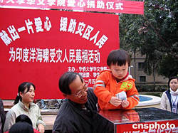 圖:華僑大學(xué)華文學(xué)院師生為海嘯受災(zāi)地區(qū)捐款