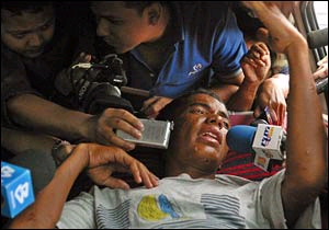 經(jīng)過8天的海上漂泊,沙普特拉的皮膚被曬得極黑,精神也受到刺激。他說自己是在亞齊省打掃一家清真寺時(shí)被海嘯卷走,同伙們都已被淹死。