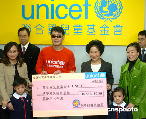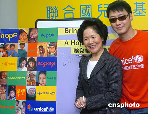 為南亞地震海嘯賑災(zāi)籌款﹐聯(lián)合國兒童基金會(huì)香港委員會(huì)副主席陳方安生太平紳士﹑親善大使黎明6日在香港呼吁社會(huì)為南亞賑災(zāi)獻(xiàn)愛心。中新社記者:趙振清