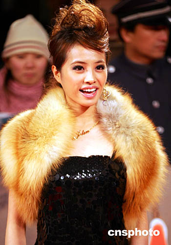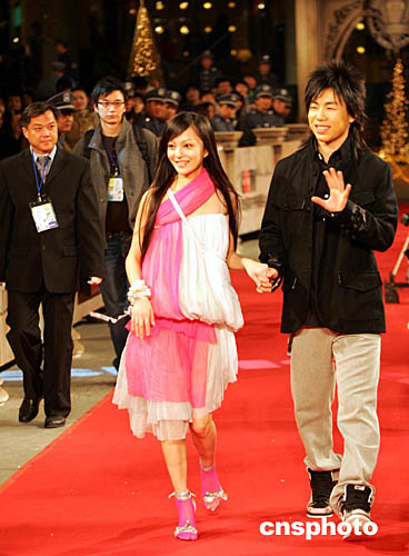 一月十一日晚,第十一屆全球華語音樂榜中榜頒獎盛典在滬舉行,香港藝人謝霆峰(圖右)和鄭希怡(圖左)出席。作者:湯彥俊