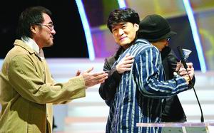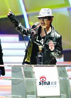 昨晚,掀起現(xiàn)場(chǎng)氣氛最高潮的是當(dāng)選“感動(dòng)藝人”的傅彪。傅彪上臺(tái)后因一度哽咽而中斷了講話:“不久前有一個(gè)普通的演員在醫(yī)院接受治療,他的愛(ài)人告訴他在新浪網(wǎng)上接收了上萬(wàn)條的祝福。于是奇跡出現(xiàn)了,今天我站在這里了。我代表我的愛(ài)人、我的兒子對(duì)網(wǎng)友表示深深的謝意!备当氡硎荆骸拔乙恢倍继嵝炎约阂诠_(kāi)場(chǎng)合忍住,但是今天太感動(dòng)了!彼M2005年能夠重返銀幕小試身手。