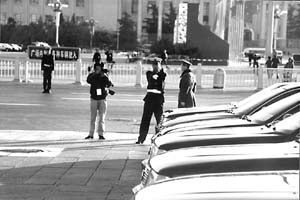 張景龍等下午3時(shí)多便到了人民大會(huì)堂北門。他說(shuō),一般情況下,特勤民警要提前1小時(shí)到,特殊情況下,甚至可能提前24小時(shí)進(jìn)行現(xiàn)場(chǎng)控制。