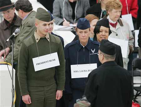 美國總統(tǒng)布什的連任就職典禮定于本月20日舉行。成功擊敗民主黨候選人克里的布什即將再次舉起右手,重復(fù)4年前的誓言。為保證儀式的順利進(jìn)行,有關(guān)部門9日在國會大廈舉行了一次預(yù)演。