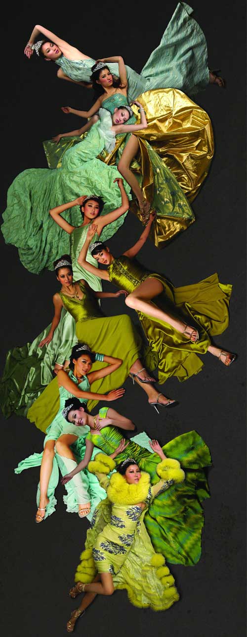 2004中國時尚大獎--年度中國最佳職業(yè)時裝模特,王敏(大)、馬力、韋杰、賈妮妮、欒鳳玲、邊彥陽、劉巾薇、張?zhí)亍⒋餍∞?由下至上)(圖片提供:黑冰攝影服裝提供:WHITE COLLAT白領(lǐng))
