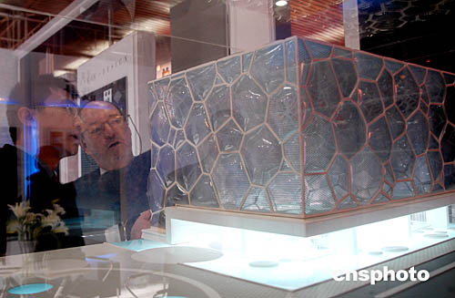 “第三屆北京國際體育基礎(chǔ)設(shè)施和場館技術(shù)展”一月十八日在北京舉行,由中建國際設(shè)計(jì)的國家游泳中心“水立方”展示時,引起外國專家注意。目前,“水立方”完成賽時全部施工圖設(shè)計(jì),工程已經(jīng)“浮出”地面。中新社記者:張宇