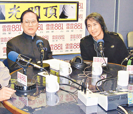 星爺與曾蔭權前晚做電臺節(jié)目,兩人惺惺相惜甚為投契,遲到五分鐘的星爺,抵達后即馬上沖入直播室,一番寒暄后,曾蔭權就大贊星爺,連贈送高帽,笑指得悉要與星仔做節(jié)目,隨即謝絕一切應酬,以免錯失機會。