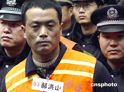一月二十一日上午九時,許昌市中級人民法院對“中原涉黑第一案”——宋留根、馬獻洲、郝洪山特大涉黑團伙案,進行一審宣判。圖為主犯之一的郝洪山被判處死刑,緩期兩年執(zhí)行,剝奪政治權利終身。以宋留根為首的涉黑犯罪團伙是五十年來河南最大的犯罪集團。作者:胡珂