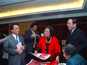 招待會上,來自京城百工坊的4位民間藝術家為來賓們現(xiàn)場制作了剪紙、泥人、面人和燙畫葫蘆,他們的精湛技藝和精彩表演體現(xiàn)了濃濃的中華特色和民族氣韻,引來客人陣陣喝彩。招待會自始至終洋溢著歡快友好的氣氛。