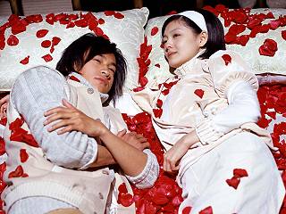 但也因為不熟,何潤東與大S幾乎沒話講,還好何潤東之前與藍正龍合作過“中華英雄”,兩人還常私下相約一起去打撞球,提到藍正龍,大S也跟著話變多,漸漸地,藍正龍竟成為兩人的共通話題。拍過多部戲,何潤東在戲中難免應劇情需要有一些親熱的鏡頭或床戲,但唯獨這一次與大S拍床戲,令他既尷尬又痛苦,原來,拍攝這場床戲的前一天,何潤東才和藍正龍拍完“中華英雄”,面對好友女友,何潤東心中難免有顧忌,即使和大S躺在同一張床上,也幾乎不敢碰對方,偏偏還撒了一床的玫瑰花,宛如早期電視劇的床戲,何潤東苦笑說:“沒辦法,朋友妻不可戲啊。”